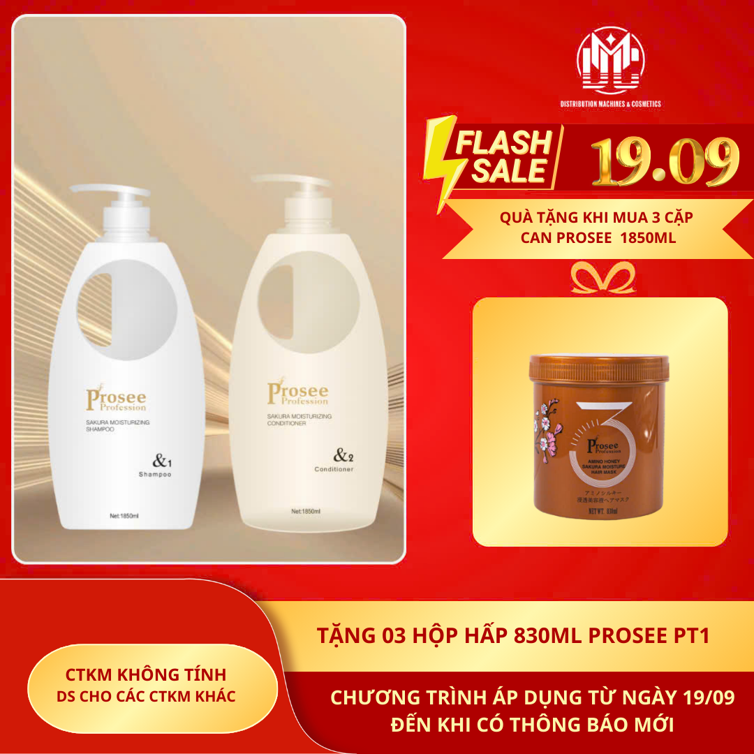 PS8PC8 Tặng 3 hộp hấp PT1 830ml Prosee Khi mua 3 Cặp Can Gội Xả Prosee Can Trắng 1850ml